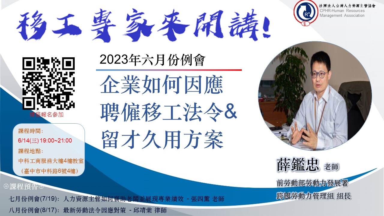 六月例會講座開始報名 - 企業如何因應聘僱移工法令及留才久用方案
